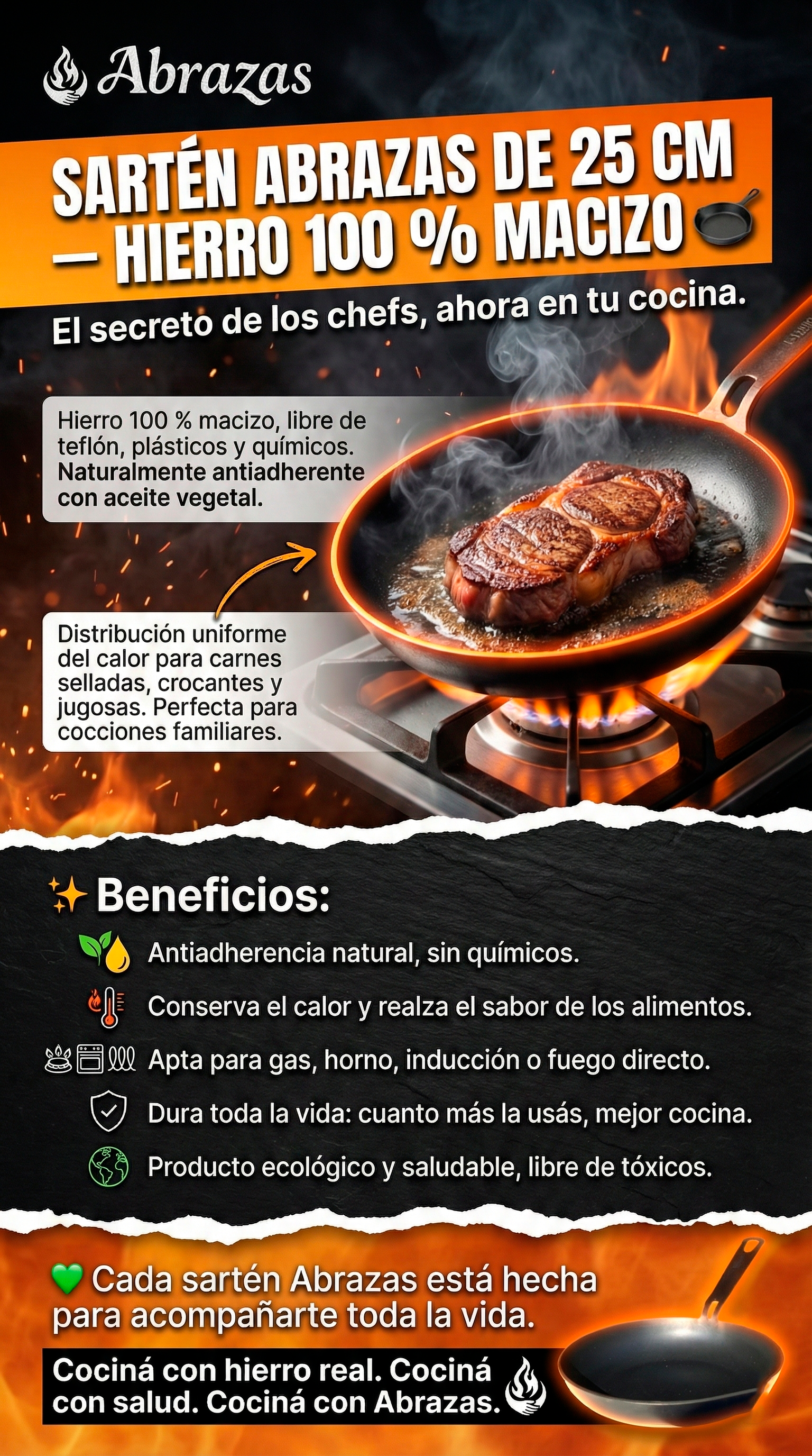 Sartén 25cm Abrazas® - 100% Hierro